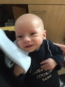 Gisteren mocht ik ook weer mijn kleertjes aan en vandaag zat ik lekker de hele dag bij Papa en Mama op schoot moet je kijken hoe gezellig.